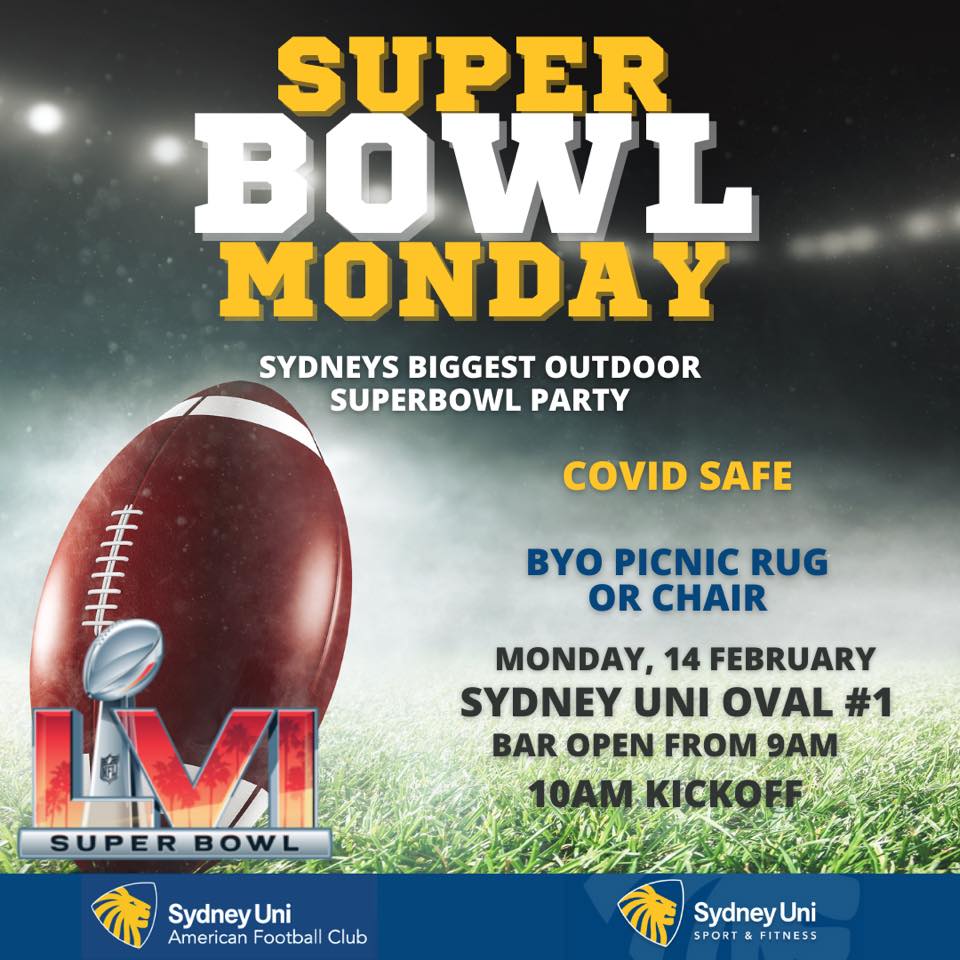 Join us for Sydney’s biggest outdoor SuperBowl event at Oval no. 1, Sydney University. Bring a picnic rug or chairs and watch the SuperBowl on the big screen!